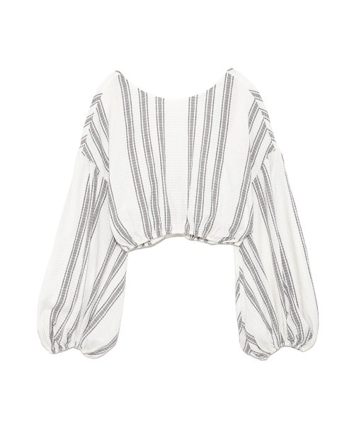 柔らかい落ち感のあるコットンリネン素材は、着心地も肌触りも快適。カラーバリエーションはカラーとピッチ幅にこだわったオリジナルストライプ。プリントではなく織りにすることで高級感が出ています。裾にゴムをあしらっているので、纏うだけで自然と立体的なフォルムに仕上がります。バックスタイルは、たっぷりとしたカシュクール風デザイン。同素材のボトムとセットアップとして着こなしても。