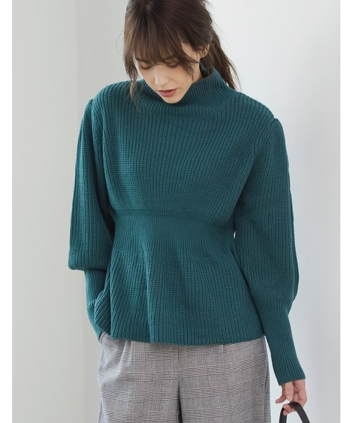 ペプラム風のメリハリシルエットが、女性らしい雰囲気を醸し出すニット。