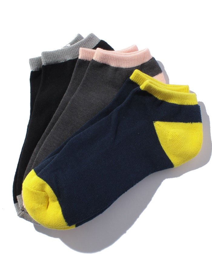 バイカラーのモードなデザインがオシャレなソックスセット。履き心地のよい素材感で、シューズからチラ見えするカラーがポイントです。