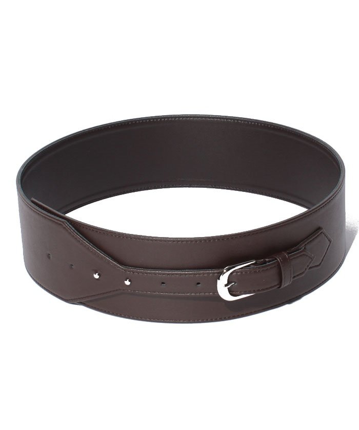 合皮素材でエレガントに仕上げたバックル太ベルト。ダークカラーで存在感のあるルックスは、ウエストラインにONするだけでメリハリのある着こなしに!ボトムやワンピースのアクセントとしてはもちろん、ゆとりのあるトップスの上から合わせればスッキリとしたコーデが決まります。