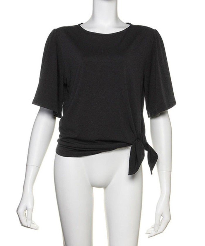 Chut! INTIMATES(シュット! インティメイツ)【 LOUNGE WEAR 】シンプルでスタイリッシュ、ライフスタイルに寄り添うラウンジウエア。 今シーズンはトレンドのアクティブウエアに着目し、使いやすいデザインながら、機能糸使いでアクティブシーンにも活用できるコレクションをご提案。* * * * * * * * * * * * * * * * * * * * * * * * * * * * * * 吸水速乾と接触冷感の機能をもつ「FEEL COOL」機能糸を使用した落ち感のある素材とゆったりとしたシルエットで身体を動かすシーンはもちろん、接触冷感のひんやりとした肌触りで夏の日常着(ルームウェア)としてもおすすめ。C157 CROSS ACTIVEシリーズとカラー連動。スポーツブラとの組合せもおすすめです。■製品詳細・吸水速乾、接触冷感の機能をもったFEEL COOL糸のポリエステルレーヨンベア天竺のフレアスリーブT・生地はよく伸びてふわっと軽い風合い・二の腕を華奢に見せてくれるひらっと広がるフレアスリーブ・肩部分にはサテン地のライン入りでスポーティな要素をプラス・左脇のみが長くなったアシンメトリーデザイン。スリット入りで結べる仕様。エクササイズの時は結んで着用すれば裾がめくれにくい・スポーツブラと合わせて、ヨガやエクササイズの時にもおすすめ※この製品は素材の特性上、着用やお洗濯により毛玉や毛羽立ち、毛羽乱れが生じることがあります。■仕様着丈:M 55cm / L 57cm(短い側)