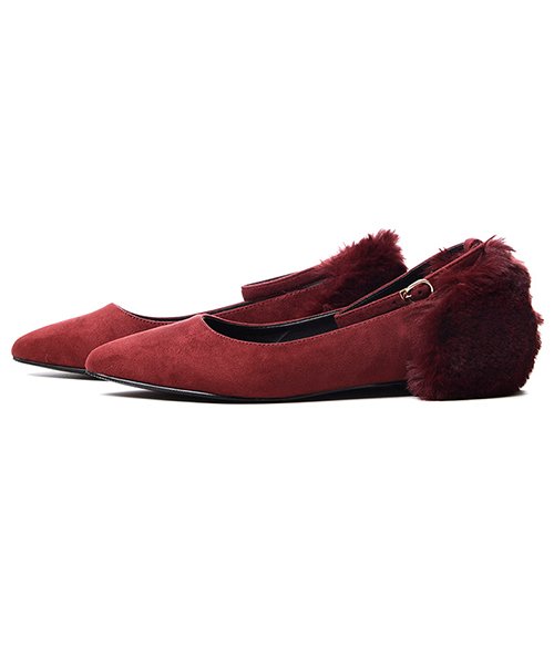 シンプルながら、かかと部分にボアあしらったトレンドシューズが入荷☆ ポインテッドで華奢なラインを演出する、秋冬ローヒールパンプス。