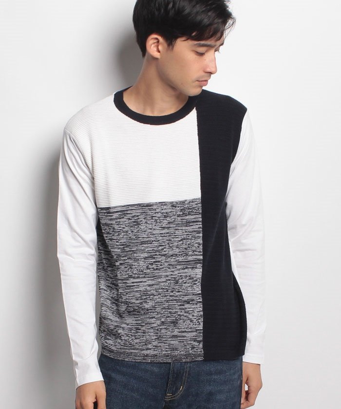 前身頃がニットで切り替えているロンT。1枚で着てもインナーにしても活躍するアイテムです。