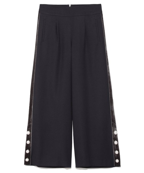 人気のスポーツMIXスタイルに外せないライン入りワイドパンツ。サイドのラインをベルベット、さらに大粒のパールモチーフでリッチに味着けたアイテム。程よくゆとりもあって、気負いなくスタイリングできます。