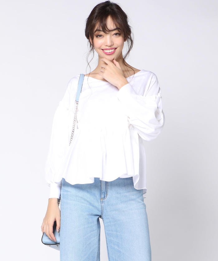 いつもよりも少し地厚なブロード素材を使用しているため、早い時期から着用していただけるボリュームブラウス。袖と裾周りにボリュームを持たせ、今年らしさ満点の一枚に仕上げました。部分的にボリュームを持たせつつも上身頃は切り替えを入れて女性の体に合うように極力コンパクトに仕上げ、着膨れしないようにサイズ感にもこだわっています。デザイン性のあるアイテムなので一枚で華やかに決まるのが嬉しいポイント!ゆるっとしたシルエットなので襟ぐりはVネックにしてシャープさをON。袖やウエスト回りのフリルやギャザーが女性らしさを引き立ててくれます。裾が広がった新化系ペプラムデザインでボトムにはパンツを合わせるのが正解です◎!細身パンツからワイドパンツまで様々なボトムと合わせてコーディネートをお楽しみくださいね!定番のホワイトに加え、爽やかで春らしいピンクとサックスブルーの色展開で重たくなりがちな真冬のコーディネートをグッと明るく彩ってくれます♪