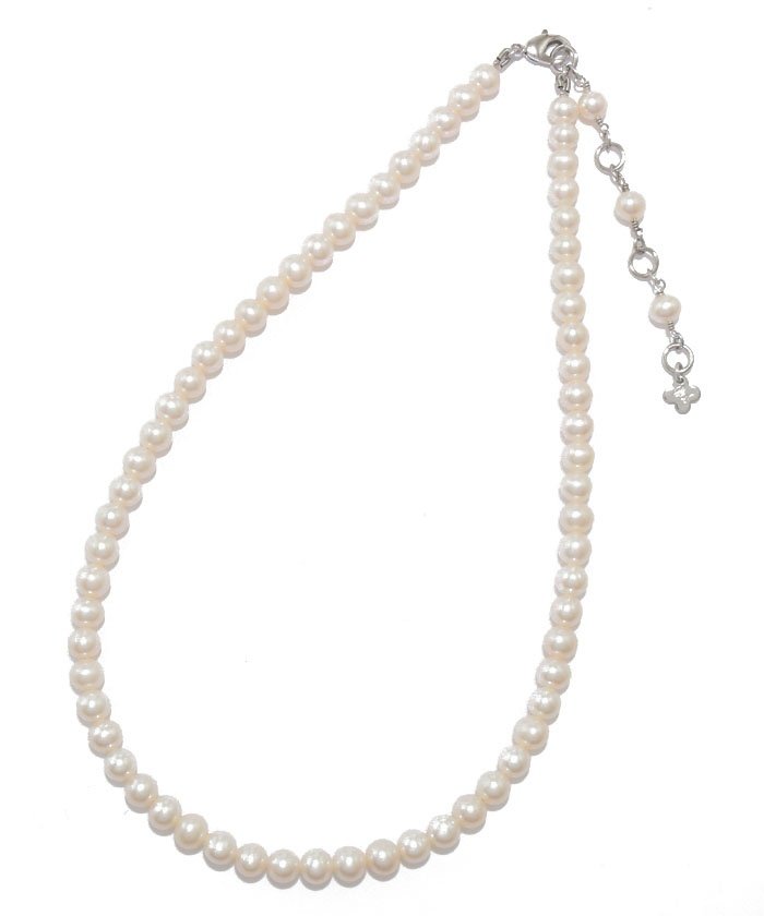淡水パールのベーシックなショートネックレス。ふっくらとしたパールが優しく女性らしい印象をプラス。使う場を問わないシンプルなネックレスは、ひとつは持っていたいアイテム。シルバーカラーのメタルの輝きが上品な華やかさを演出します。