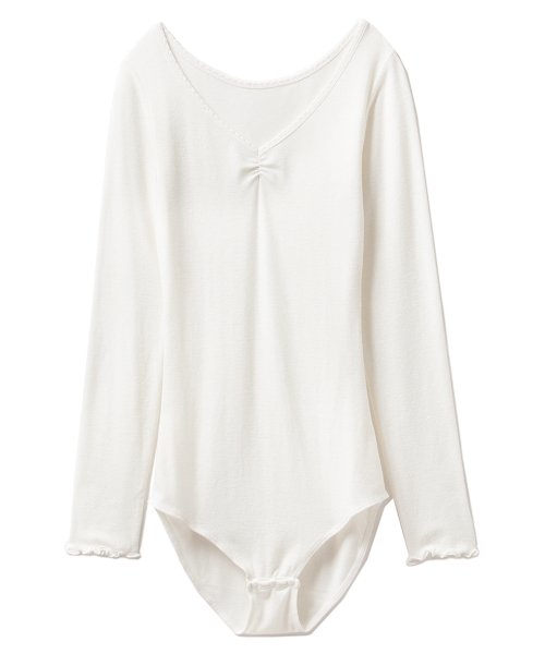 冬に大人気の保温性の高いホットファブリックを使用した、薄手のインナーから、今季はジェラートピケで初となるレオタードデザインが登場しました。胸元は、デコルテがきれいに見えるVラインにこだわり、胸元にギャザーを寄せてフェミニンな雰囲気を演出。ズレにくいため、腰回りの暖かさも格別です。さらに女の子のおしゃれ心を刺激する、ハート柄に針抜きされたかわいいデザインで、”レア感”のある一枚に仕上がっています。