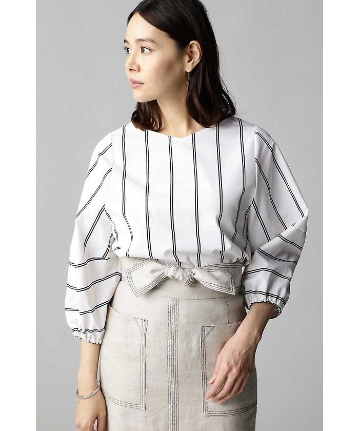 ボリュームたっぷりのバルーンスリーブが印象的な、今年らしいこなれ感を薫らせるプルオーバーブラウス。立体的な美シルエットが活きる適度な張りを持つコットン素材を使用。程よく詰まったVネックと相まって、オフィスにも対応できる品の良さを漂わせています。袖の切り替えでアクセントを加えた、さり気ないディテールワークにもセンスが光る1枚。着用モデル:H167/B84 W58 H86 着用サイズ:38