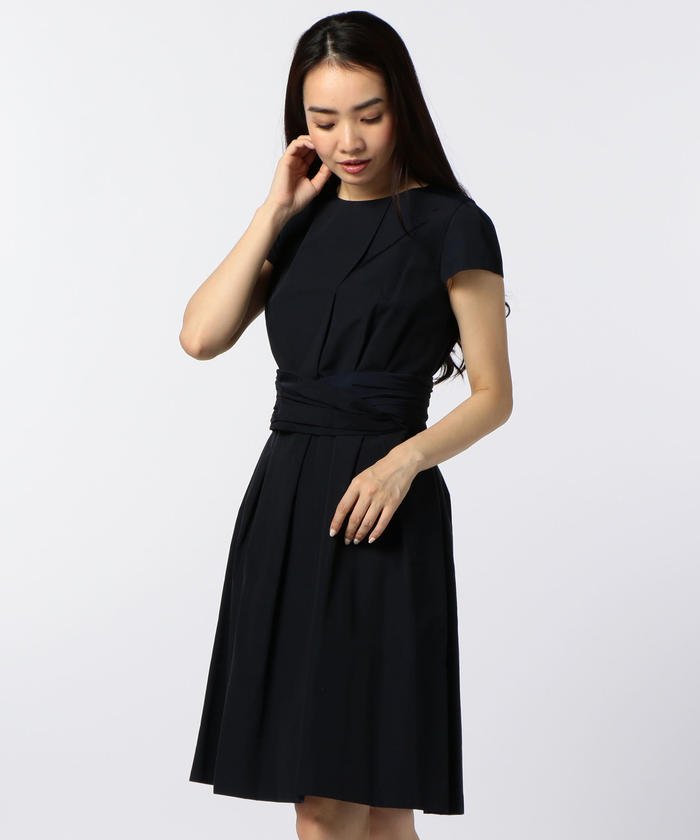 ウエストにタックをたたんでシルエットをフェミニンに仕上げたワンピース。シンプルなデザインは着こなしやすく、ジュエリーや羽織でのアレンジを多彩にお楽しみいただけます。膝丈で上品にまとまり、パーティなどの特別なイベントにも最適。ベルトを外しても着用できます。