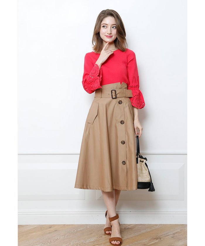 トレンチの要素を用いたトラッドなディテールが上品さを後押し。広がりおさえめながらエレガントに揺れ動くシルエットで女性らしさもより引きつ、クラシカルモダンなスカートが登場です。
