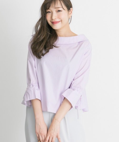 【ストライプとバックフレアが爽やかなブラウス】
