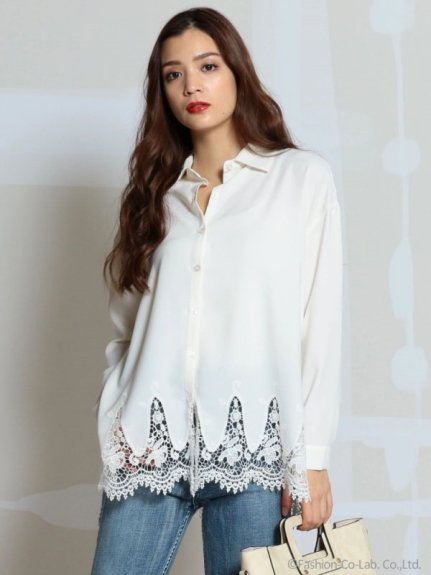 エレガントな雰囲気が引き立つ、スカラップ刺繍をデザインしたブラウスです。